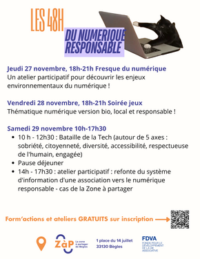 Dans les cadres des 48h du Numérique responsable, la ZàP vous invite à une soirée jeux spéciale numérique version bio, local et responsable !