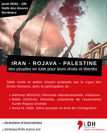 table ronde LDH // Iran - Rojava - Palestine : des peuples en lutte pour leurs droits et libertés