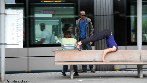 Elles sont trois qui dansent ici. C'est un lieu de nos vies où l'on se croise, que l'on emprunte sans plus y faire attention. Leurs danses ralentissent le flux, déroutent nos trajectoires, suggèrent la rencontre, redonnent place au corps sensible et vulnérable. On décille nos regards sur les lieux et les humain-es qui l'habitent, on écoute la musicalité de la rue, on s'attendrit et on s'accorde. Le lieu réapparaît, s'ouvre aux failles et respire.
