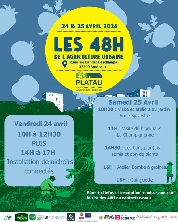 Cette PLATAU participe de nouveau au festival Les 48H de l'Agriculture Urbaine région bordelaise les 24 et 25 avril 2026 !